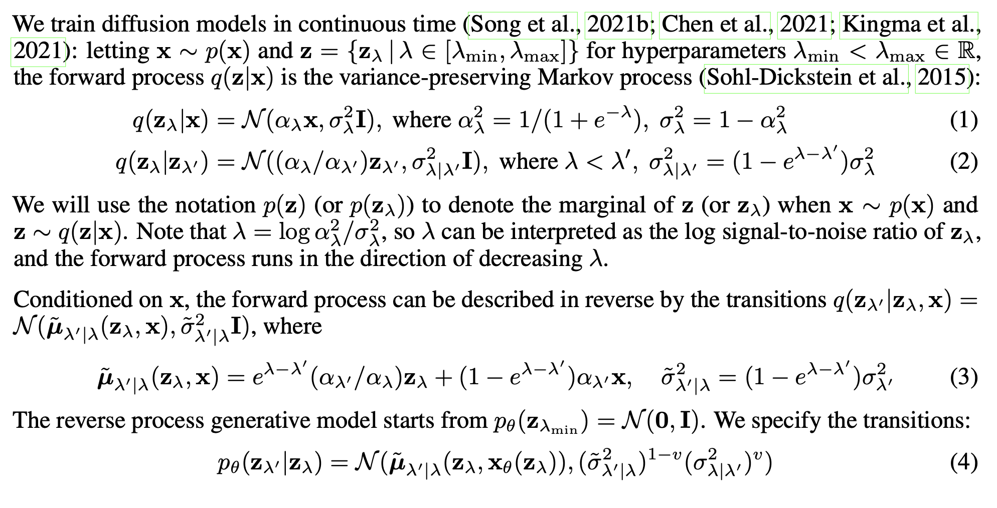 다만 DDPM에서 봤던 수식에 익숙해져 있다면, 약간 헷갈릴 수는 있다. λ<λ' 이다. 즉, λ가 작아져가는 과정이 forward process이다.