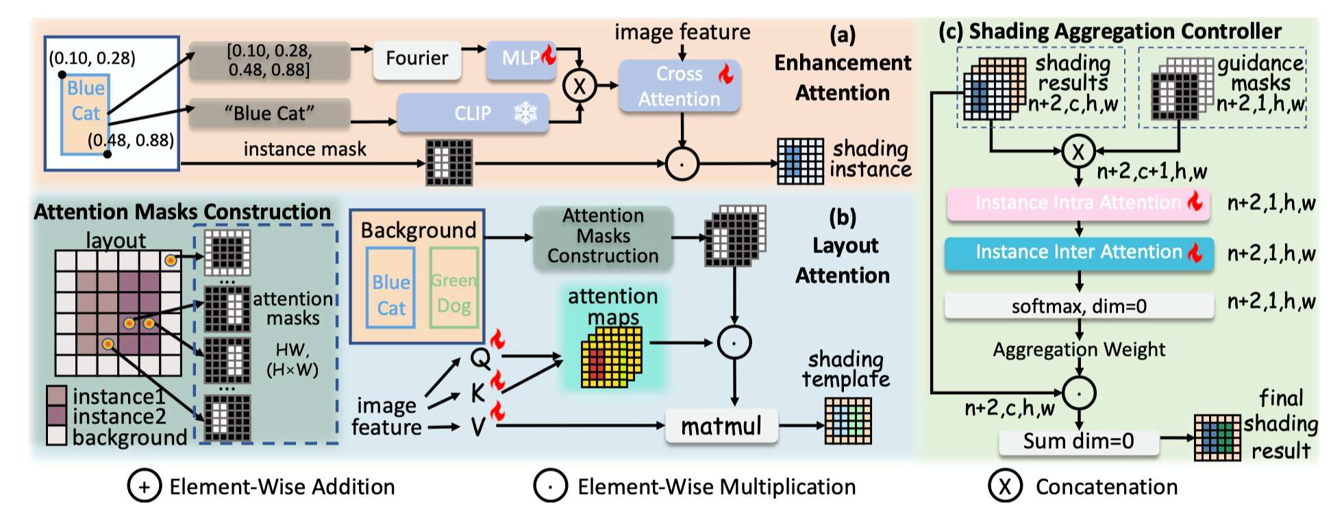 - 이때 우선은, "Blue Cat", "Green Dog"와 같은 description을 CLIP 태운 벡터로부터 key, value를 얻어 Attention을 작업한 후에,