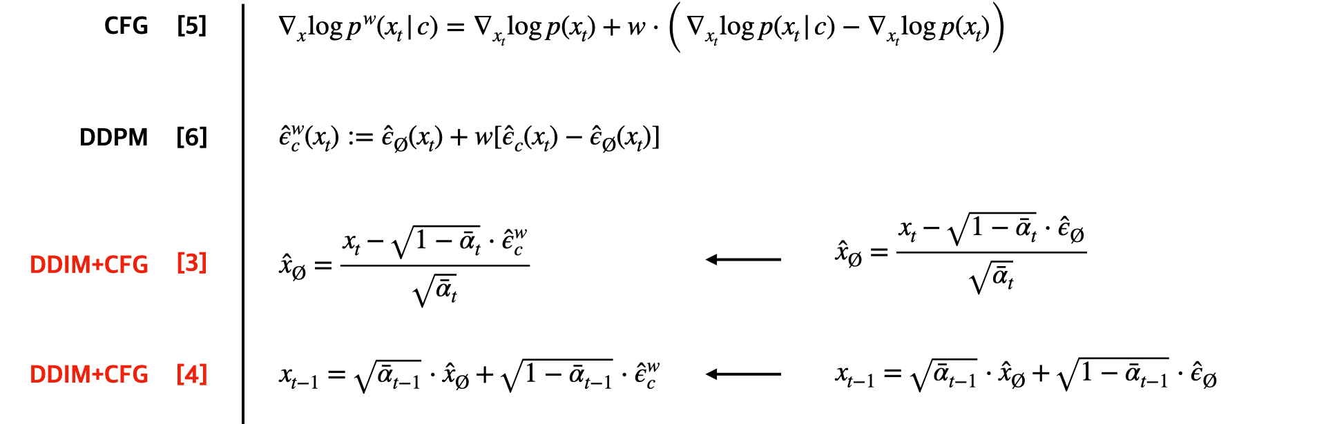 일단 여기까지는 일반적인 CFG+DDIM Sampling을 설명한 것이고, 여기서부터 CFG++ 설명이 시작된다.